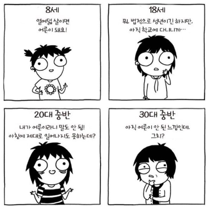 인생은 예상치 못한 커브볼을 우리에게 던지는 재미있는 방법이 있습니다. 그렇지 않습니까? 집안일을 따라잡기 위한 끊임없는 분투를 예로 들 수 있습니다. 사진: 마침내 침실을 집어삼킬 것이라고 위협하는 산더미 같은 빨래를 정복하고, 싱크대에는 하룻밤 사이에 배가 된 것으로 보이는 접시들이 넘쳐나고 있다는 것을 깨닫습니다. 익숙하게 들립니까? 사라 앤더슨(Sarah Andersen)도 이해합니다. "나는 어른이 되긴 글렀어"에서 그녀는 성인이 될 때 종종 수반되는 혼란과 예측할 수 없는 것에 대한 재미있게 정확한 그림을 그립니다. 관련성 있는 삽화를 통해 안데르센은 삶이 우리에게 던지는 끝없는 할 일 목록과 예상치 못한 도전에 압도당해도 괜찮다는 것을 우리에게 상기시킵니다. 결국, 누가 그들이 청구서 지불하는 것을 잊었거나 세탁 중에 좋아하는 스웨터를 실수로 줄였다는 것을 깨달았을 때 잠시 당황하지 않았겠습니까? 혼란 속에서 유머를 찾음으로써, 앤더슨은 독자들이 어떤 날의 엉망징창이 된 삶을 받아들이고 성인의 되어가는 과정을 공유하는 경험에서 위안을 얻으라고 독려합니다.